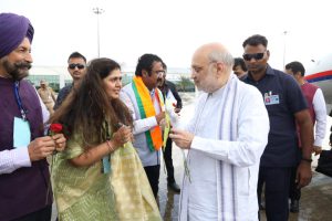 नांदेड- केंद्रीय गृह व सहकार मंत्री अमित शाह यांचे आज दुपारी येथील श्री गुरुगोबिंदसिंघजी नांदेड विमानतळावर आगमन झाले. यावेळी त्यांच्या सोबत मुख्यमंत्री देवेंद्र फडणवीस, महसूलमंत्री चंद्रशेखर बावनकुळे यांचेही आगमन झाले.