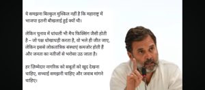 शेवटी राहुल गांधी म्हणतात – “हरल्यानंतर रडणं सांगितलं, कायद्याचा अपमान सांगितला, निवडणूक अधिकाऱ्यांचा अपमान सांगितला. पण आम्ही विचारलेले पाच प्रश्न अजूनही अनुत्तरित आहेत.”
