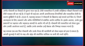 गोस्वामी यांचे वकील महेश जेठमलानी यांनी सांगितले की, अद्याप त्यांना याचिकेची प्रत मिळालेली नाही. यावर न्यायमूर्ती कौरव यांनी स्पष्ट केले की, “आम्ही अद्याप आपल्याला कोणतीही नोटीस पाठवलेली नाही. प्रत मिळाल्यानंतरच पुढील सुनावणी होईल.”अर्णव गोस्वामी यांच्यावर याआधीही अनेक खटले दाखल झाले आहेत. 2020 मध्ये महाराष्ट्र सरकारने त्यांच्यावर आत्महत्येस प्रवृत्त केल्याचा आरोप केला होता. तसेच, त्यांच्या काही प्रसारणांमध्ये भडकाऊ भाषा वापरल्याचा आरोपही झाला होता.अर्णव गोस्वामी यांना काहीजण आक्रमक आणि पक्षपाती पत्रकार मानतात, तर काहीजण त्यांना निर्भीड आणि स्पष्टवक्ते पत्रकार मानतात. त्यांच्या पत्रकारितेने अनेकदा चर्चेला उधाण आणले आहे.