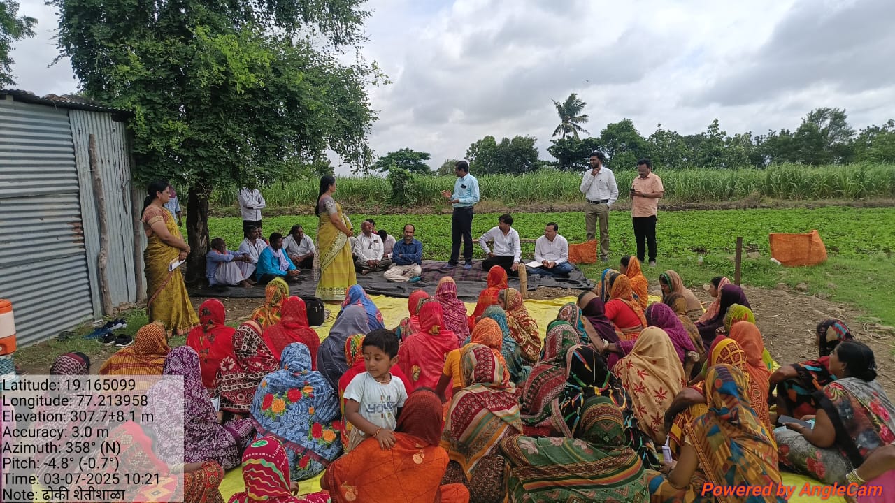 नांदेड :- कृषी विभागामार्फत नांदेड तालुक्यातील मौजे ढोकी येथे सोयाबीन पिकाचे महिलांचे विनाअनुदानित शेती शाळेचे नुकतेच आयोजन करण्यात आले होते.