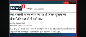 काल बिहार विधानसभेच्या पावसाळी अधिवेशनात मुख्यमंत्री नितीश कुमार आणि विरोधी पक्षनेते तेजस्वी यादव यांच्यात जोरदार खडाजंगी झाली. त्यानंतर तेजस्वी यादव यांनी संपूर्ण निवडणुकीवर बहिष्कार टाकण्याची शक्यता वर्तवली आहे.