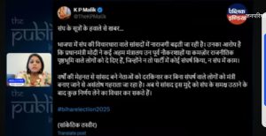 भाजपमधील आरएसएस विचारसरणीचे खासदार धनखड यांच्याविषयी सहानुभूती बाळगत नसले, तरी या प्रक्रियेमध्ये जी पद्धत वापरली गेली, त्याबद्दल त्यांच्यात रोष आहे. त्यांच्या भीतीमुळे चर्चेला अधिक तीव्रता मिळाली आहे — जर गुजरात लॉबीने बनावट आरएसएस उभे केले आणि खरे आरएसएस बाजूला काढले, तर आमचे काय? आरएसएस ही संघटना अधिकृतरीत्या नोंदणीकृत नसल्यामुळे दुसरे आरएसएस तयार करणे सरकारला सहज शक्य होईल, अशी भीती त्यांच्यात आहे.नीलू व्यास यांनी मलिक यांना विचारले की, “हे खासदार कोण आहेत?” तेव्हा त्यांनी उत्तर दिले की, “माझ्या माहितीचे स्रोत सुरक्षित ठेवण्यासाठी मी ती नावे उघड करू शकत नाही.” पण त्यांनी उदारहण दिले की, संजय जोशी यांना १८ वर्षांपूर्वी राजकारणातून बाहेर ठेवण्यात आले. काँग्रेसने त्यांना राज्यसभा सदस्यत्वाची ऑफर दिली होती, पण त्यांनी नम्रपणे नकार दिला. त्यांनी पक्ष बदलण्यापेक्षा आपल्या तत्त्वांशी तडजोड न करण्याचा निर्णय घेतला.हीच मानसिकता आज अनेक आरएसएस विचारसरणीच्या खासदारांमध्ये आहे, ज्यांच्या मनात खदखद वाढत आहे.