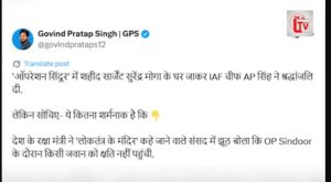 ऑपरेशन सिदूरमध्ये वीरमरण पत्करलेल्या सार्जेंट सुरेंद्र मोगा यांच्या घरी जाऊन हवाई दल प्रमुख अमरप्रीत सिंग यांनी श्रद्धांजली अर्पण केली. परंतु याच वेळी लोकशाहीच्या मंदिरात,संसदेमध्ये संरक्षण मंत्री राजनाथ सिंह यांनी सांगितले होते की “ऑपरेशन सिदूर दरम्यान कोणत्याही सैनिकाला कुठलाही इजा झालेली नाही.” यावरून स्पष्ट होते की आपल्या लोकशाहीच्या मंदिरात खोटेपणाचे धंदे किती बिनधास्तपणे सुरू आहेत, हे सामान्य नागरिकांनी समजून घ्यायला हवे.आजही असं सांगितलं जातं की ऑपरेशन सिदूर दरम्यान फायटर जेट चालवणारी वैमानिक शुभांगी सिंह बेपत्ता आहे. तिचं नेमकं काय झालं हे आजतागायत देशाला माहित नाही, आणि कोणताही अधिकृत खुलासा करण्यात आलेला नाही.दु:ख याचंही वाटतं की तीन महिन्यांनंतरच हवाई दल प्रमुख अमरप्रीत सिंग यांनी सुरेंद्र मोगा यांच्या घरी भेट दिली आणि त्यांच्या कुटुंबीयांना सांत्वना दिली. त्यामुळे आता असा प्रश्न उपस्थित होतो की सैन्यातील अधिकारी सुद्धा राजकीय लोकांप्रमाणेच वागत आहेत का?