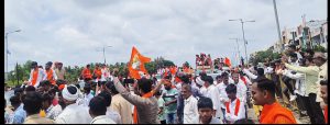 मराठा आरक्षणासाठी मराठ्यांनी आता चंग बांधले असून मराठा आरक्षण घेऊनच परत येणार असा निर्धार दि. 26 ऑगस्ट रोजी अंतरवाली सराटीच्या दिशेने निघालेल्या मराठा सेवकांनी केला. छत्रपती शिवाजी महाराज अश्वारूढ पुतळ्याचे दर्शन घेऊन सोळा तालुक्यातील लाखो समाज बांधव मुंबईच्या दिशेने रोजच्या जीवनावश्यक वस्तूंसह रवाना झाले आहेत. गणेश चतुर्थीचा सण असतानाही एवढ्या मोठ्या प्रमाणात नांदेड जिल्ह्यातील मराठा सेवकांना अंतरवालीची आस लागली होती. विघ्नहर्ता गणराया मराठा आरक्षणातले सगळे विघ्न दूर करो ही प्रांजळ प्रार्थना करून यंदाचे गणपती विसर्जन अरबी समुद्रात करण्याचा मानस मराठा सेवकांनी केला.