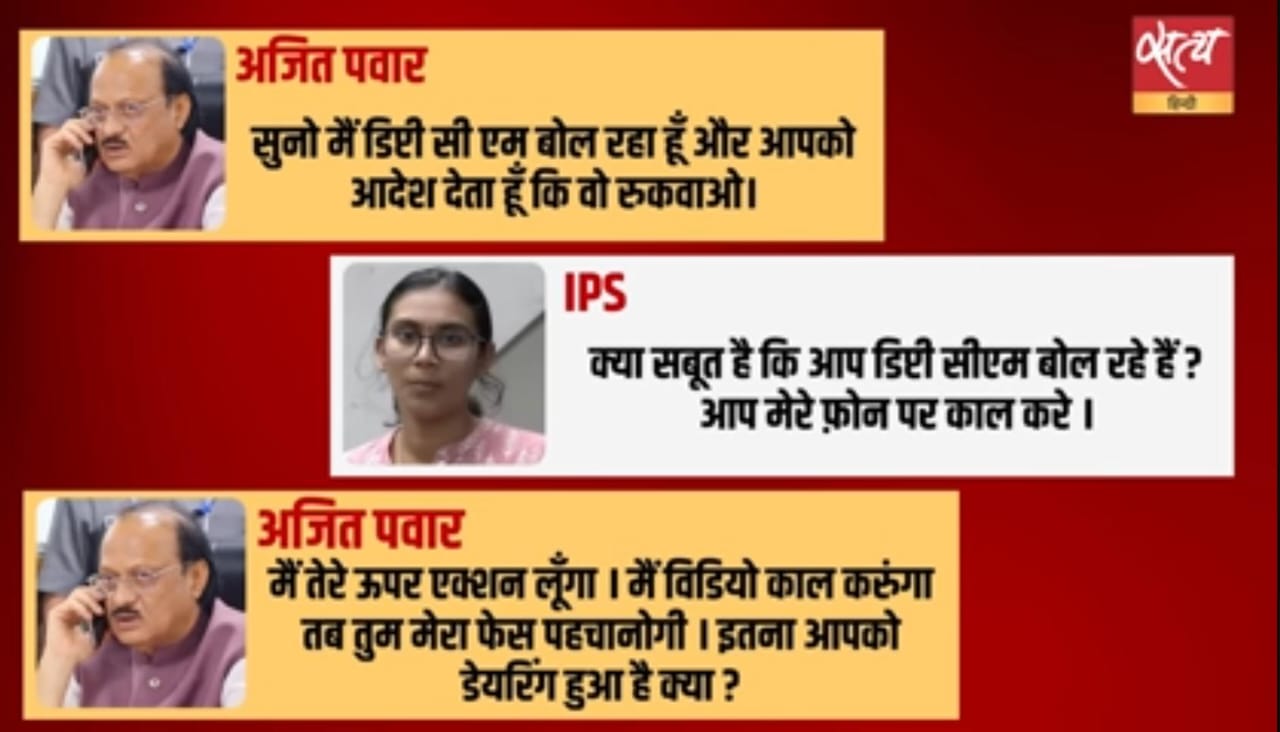 अशा प्रकारे, एका कार्यकर्त्याच्या फोनवरून अंजना कृष्णा यांना अजित पवार थेट आदेश देतात, हेच या प्रकरणाचे गांभीर्य वाढवते. यानंतर सोलापूरमध्ये बाबा जगताप आणि इतर 19 जणांविरुद्ध शासकीय कामात अडथळा केल्याप्रकरणी गुन्हा दाखल करण्यात आला आहे.