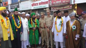 नांदेड(प्रतिनिधी)-लबैक रसुल अल्लाह लबैक या घोषणांनी आज नांदेड शहरात ईद -ए-मिलादुन्नबीची मिरवणूक अर्थात जुलूस-ए-मोहम्मदी अत्यंत उत्साहात पार पडली. मुस्लिम बांधवांनी श्री गणेश सोहळ्याच्या निमित्ताने ही पाच तारखेची मिरवणूक आठ तारेखला काढली आहे.