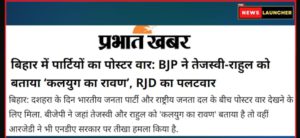 बिहारच्या राजकारणात सध्या अशाच एका रावण दहनाच्या पोस्टरवरून खळबळ उडाली आहे. भाजपने राहुल गांधी यांना ‘कलियुगाचा रावण’ म्हणत पोस्टर प्रसिद्ध केले. यावर तेजस्वी यादव यांनी तीव्र प्रतिक्रिया दिली. बिहारमधील राजकारण इतके गडद झाले आहे की, तेथील प्रत्येक बालक देखील राजकारणावर चर्चा करताना दिसतो.