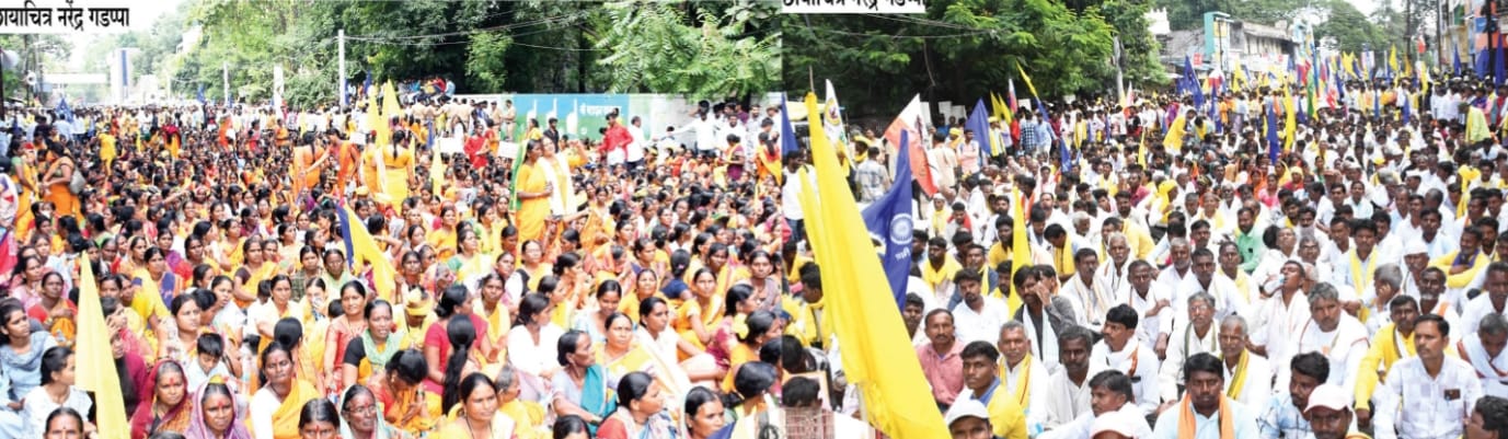 जिल्ह्यातील आदीवासी समाजाने आपल्या हक्कासाठी आणि आरक्षण बचावासाठी दि.6 ऑक्टोबर रोजी विराट मोर्चा काढला. हा मोर्चा नवा मोंढा येथील मैदानावरून हिंगोली गेट मार्गे चिखलवाडी कॉर्नर जाऊन जिल्हाधिकारी कार्यालयावर धडकला. या मोर्चाचे नेतृत्व आ.भिमराव केराम यांनी केले असले तरी या मोर्चात असंख्य आदीवासी बांधव सहभागी झाले होते. यावेळी आ .केराम बोलतांना म्हणाले की, राज्यातील बंजारा समाज हा श्रीमंत समाज म्हणून ओळखला जातो. या समाजाने राज्याचे नेतृत्व केल आहे. बंजारा समाजाच्या नेत्यांनी हैद्राबाद गॅझेटमधील 1920 चा संदर्भ देत बंजारा समाजाला एसटी प्रवर्गात आरक्षण लागू करण्याची मागणी करून समाजातील तरुणांचे डोके भडकविण्याचे काम सुरू केल आहे. परंतू महाराष्ट्रातील एस.टी आरक्षणाला धक्का लावण्याचा कोणीही प्रयत्न करू नये. घुसखोरी करणार्यांचे षडयंत्र हाणून पाडू असा इशाराही यावेळी आ.भिमराव केराम यांनी दिला. या मोर्चात पारंपारीक वेशभूषेसह नृत्य, वाद्, वाजत महिला मंडळासह लहान मुलांचाही मोठ्या प्रमाणात सहभाग या मोर्चात होता.