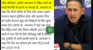 अजित आगरकर यांनाही यावर प्रश्न विचारले गेले. तीन वेगवेगळ्या फॉरमॅटसाठी तीन कर्णधार ठेवणे कठीण असल्याचं त्यांनी मान्य केलं. शुभमंगलला तयार होण्यासाठी वेळ द्यावा लागेल, असं ते म्हणाले. त्यांनी रोहित शर्मा आणि विराट कोहली २०२७ विश्वचषकासाठी खेळतील, असं स्पष्ट केलं. पण सध्या संघाचं लक्ष २०२६ च्या टी-२० वर्ल्ड कपकडे आहे, असंही त्यांनी स्पष्ट केलं.रोहित शर्माने ५६ वनडे सामने खेळले असून, त्यातील ४२ सामने जिंकले आहेत — म्हणजेच त्याची विजयाची टक्केवारी ७६% आहे. त्याला सन्मानाने निरोप मिळायला हवा होता, पण तसं झालं नाही. गौतम गंभीर यांच्या लहानशा राजकीय विचारसरणीमुळे असा अन्याय झाल्याचं अनेकांचं मत आहे.