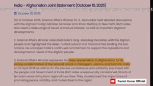 भारताचे विदेश मंत्री एस. जयशंकर आणि अफगाणिस्तानचे मुत्ताकी यांनी संयुक्त पत्रकार परिषद घेतली. जयशंकर म्हणाले की, “भारत आणि अफगाणिस्तान दोघेही सीमारेषेपलीकडील दहशतवादाने त्रस्त आहेत.”मात्र याच तालिबानला पूर्वी भारताने दहशतवादी संघटना म्हणून घोषित केले होते, आज त्यांच्यासोबत एकत्र बसून संवाद साधला जातोय.यावर प्रश्न उपस्थित होतो की, आतापर्यंत तालिबानला जे आतंकवादी मानले जात होते, त्यांना आता ‘आतंकपीडित’ का म्हटले जात आहे?