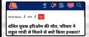 उत्तर प्रदेशमध्ये हरिओम वाल्मिकी नावाच्या एका युवकाला मारहाण करून खून करण्यात आला. मारहाण होत असताना त्या युवकाने राहुल गांधींचे नाव घेतले होते. कदाचित त्याचा विश्वास होता की राहुल गांधींचे नाव घेतल्यामुळे त्याचा जीव वाचेल; परंतु तसे घडले नाही आणि तो मरण पावला.