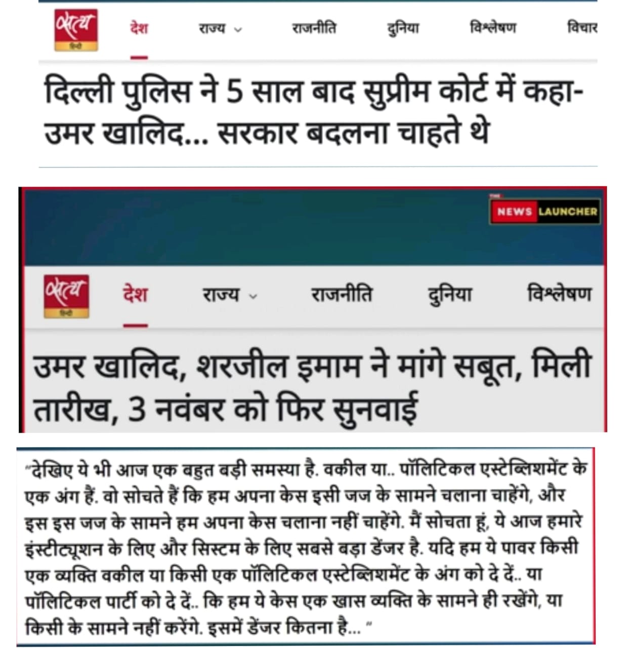 उमर खालिद आणि शरजील इमाम दोन युवक. चार ते सहा वर्षांपासून तुरुंगात आहेत. गुन्हा? विचार मांडणे. आरोप? कट रचल्याचा. पुरावा? न्यायालयालाच माहिती नाही. आणि परिणाम? पुढची तारीख. नेहमीच “पुढची तारीख”.या देशात आता न्यायालयीन भाषेचा एकच नवा अर्थ झाला आहे — “Date is granted, Justice is denied.”