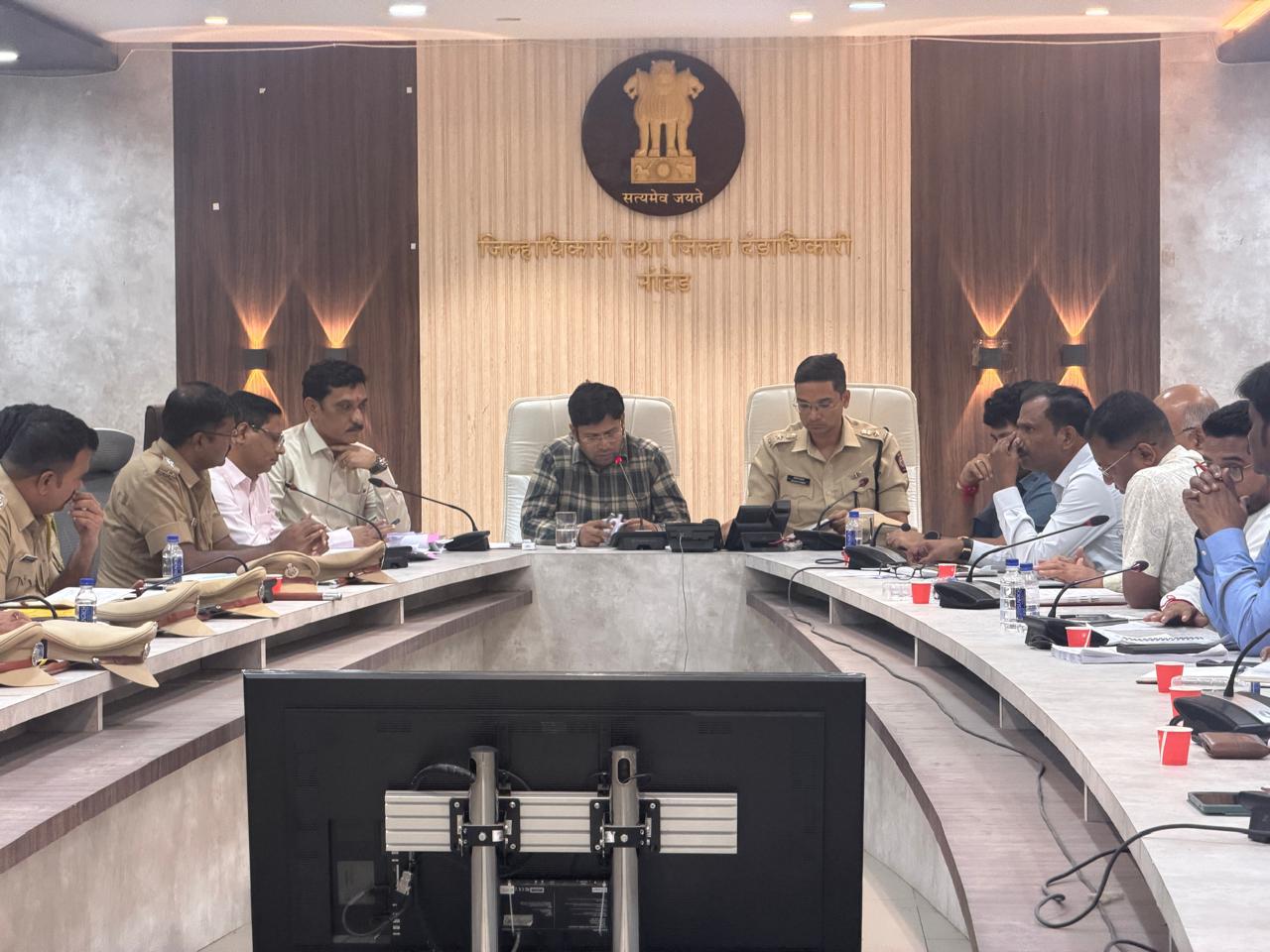 जिल्ह्यातील नगरपरिषदा व नगरपंचायतीच्या सार्वत्रिक निवडणुकीच्या अनुषंगाने जिल्हाधिकारी राहुल कर्डिले यांच्या अध्यक्षतेखाली 5 नोव्हेंबर रोजी दुपारी 3 वा. जिल्हाधिकारी कार्यालय नांदेड येथे बैठक संपन्न झाली. यावेळी पोलीस अधीक्षक अबिनाश कुमार, निवासी उपजिल्हाधिकारी किरण अंबेकर, जिल्हा सहआयुक्त गंगाधर इरलोड सर्व उपविभागीय पोलीस अधिकारी, सर्व नगरपरिषद/नगरपंचायतीचे निवडणूक निर्णय अधिकारी, सहाय्यक निवडणूक निर्णय अधिकारी, अतिरिक्त सहाय्यक निवडणूक निर्णय अधिकारी व नगरपरिषद/नगरपंचायतीचे मुख्याधिकारी यांची उपस्थिती होती.