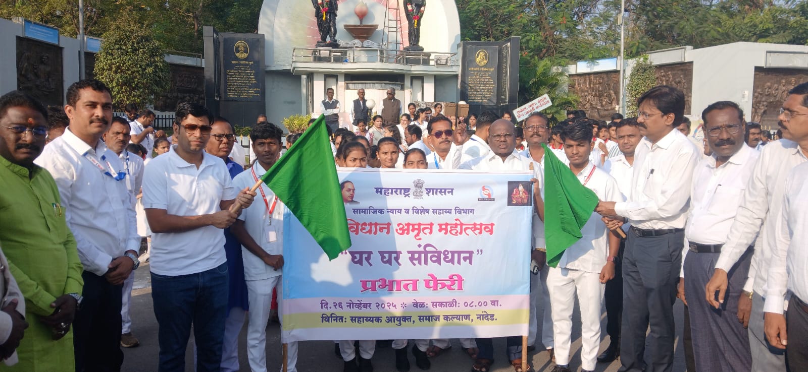 नांदेड – समाज कल्याण कार्यालयाच्यावतीने आज संविधान दिनानिमित्त भव्य संविधान रॅलीचे आयोजन करण्यात आले होते. जिल्हाधिकारी राहुल कर्डीले, अतिरिक्त जिल्हाधिकारी रत्नदीप गायकवाड, सहाय्यक आयुक्त शिवानंद मिनगीरे यांचे हस्ते हिरवी झेंडी दाखवून संविधान रॅलीची सुरुवात करण्यात आली.