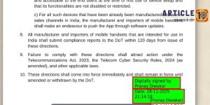 केंद्र सरकारने 28 नोव्हेंबरच्या रात्री नऊच्या सुमारास अक्षरशः लोकशाहीच्या बोंबलावर परिपत्रक फेकले. संचारसाथी’ नावाचा ॲप आता प्रत्येक भारतीयाच्या मोबाईलमध्ये अनिवार्य! मोबाईल भारतातला असो वा परदेशातून आयात झालेला, प्रत्येक फोनमध्ये हा सरकारी गुप्तहेर घालूनच विक्री करा, असा स्पष्ट हुकूम मोबाईल कंपन्यांवर टाकला गेला.पण या संपूर्ण प्रकरणात सर्वात विचित्र व संतापजनक बाब म्हणजे,दूरसंचार मंत्री ज्योतिरादित्य सिंधिया यांचे उघडपणे खोटी माहिती देणे.