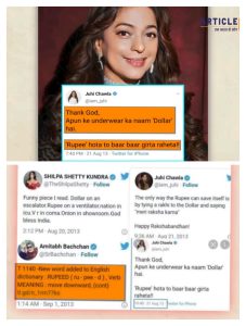 आणि आजचा आर्थिक गोंधळ पाहता वाटतं आपल्या भाषणांची टोनच भविष्यवाणी होती.जर 64 रुपये “रुपया पाताळात गेला” असेल,तर 90.17 रुपये म्हणजे काय?रुपया थेट स्मशानयात्रेला निघाला? तेव्हा अनुपम खेर पासून जुही चावला, विवेक अग्निहोत्री पासून अमिताभ बच्चन सगळे रुपयावर विनोदांच्या गोळ्या झाडत होते.जुही चावलाने “माझ्या अंडरवेअरचं नाव डॉलर आहे” सांगितलं होतं.अमिताभ बच्चन यांनी तर लघवीची तुलना केली होती.आणि आज? आज त्यांना बहुतेक ईडी-आयटीचा आलिंगन इतका घट्ट बसला आहे की शब्दच बाहेर येत नाहीत.