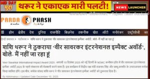काल तिरुअनंतपुरममध्ये स्थानिक स्वराज्य संस्थांच्या निवडणुकीत मतदान केल्यानंतर त्यांनी लोकसभेतील ‘वंदे मातरम्’ चर्चेबाबत टिप्पणी करताना ती “वेळेचा अपव्यय” असल्याचे म्हटले. परंतु निवडणूक सुधारणा-विषयक चर्चा “उत्तम” असल्याचेही नमूद केले. त्यांच्या या विधानाने पंतप्रधान नरेंद्र मोदी आणि गृहमंत्री अमित शाह यांनी त्यांच्या कडून उभ्या केलेल्या अपेक्षांनाच धक्का बसल्याची राजकीय वर्तुळात चर्चा आहे. कारण हे दोघे जेव्हा कोणतेही नियोजन करतात, तेव्हा ते अत्यंत काटेकोर असते. ज्यात एखादा अडकला तर बाहेर पडणे कठीण होते, अशी टीकात्मक मांडणी विरोधक करत असतात. अशा परिस्थितीत थरूर यांनी वीर सावरकरांच्या नावाचा पुरस्कार नाकारणे हे निश्चितच धक्कादायक आहे.