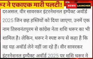 काल तिरुअनंतपुरममध्ये स्थानिक स्वराज्य संस्थांच्या निवडणुकीत मतदान केल्यानंतर त्यांनी लोकसभेतील ‘वंदे मातरम्’ चर्चेबाबत टिप्पणी करताना ती “वेळेचा अपव्यय” असल्याचे म्हटले. परंतु निवडणूक सुधारणा-विषयक चर्चा “उत्तम” असल्याचेही नमूद केले. त्यांच्या या विधानाने पंतप्रधान नरेंद्र मोदी आणि गृहमंत्री अमित शाह यांनी त्यांच्या कडून उभ्या केलेल्या अपेक्षांनाच धक्का बसल्याची राजकीय वर्तुळात चर्चा आहे. कारण हे दोघे जेव्हा कोणतेही नियोजन करतात, तेव्हा ते अत्यंत काटेकोर असते. ज्यात एखादा अडकला तर बाहेर पडणे कठीण होते, अशी टीकात्मक मांडणी विरोधक करत असतात. अशा परिस्थितीत थरूर यांनी वीर सावरकरांच्या नावाचा पुरस्कार नाकारणे हे निश्चितच धक्कादायक आहे.