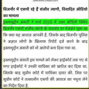 आज उत्तर प्रदेशातील बस्ती जिल्ह्यात डीआयजी पदावर असलेले आयपीएस अधिकारी संजीव त्यागी,2020 मध्ये बिजनौरचे एसपी असताना, सीएए–एनआरसी आंदोलनाच्या काळात, बिनतारी संदेशावरून दिलेले काही “आदेश”.
