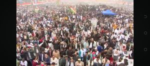 १४ एप्रिल रोजी काँग्रेस पक्षाच्या वतीने दिल्लीतील रामलीला मैदानावर आयोजित जाहीर सभेला अभूतपूर्व प्रतिसाद लाभला. देशाच्या कानाकोपऱ्यातून लाखो नागरिक या सभेसाठी दाखल झाले. इतकी प्रचंड गर्दी होती की दिल्लीची वाहतूक व्यवस्था अक्षरशः कोलमडून पडली. लोकांना निवासाची जागा मिळाली नाही; अनेकांना रस्त्यांवर, बागांमध्ये, उघड्यावर रात्र काढावी लागली. कडाक्याची थंडी आणि धुक्याची पर्वा न करता सकाळी सहा वाजल्यापासून नागरिक रामलीला मैदानात प्रवेशासाठी रांगेत उभे होते.
