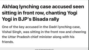 या हत्याकांडानंतर 2019 च्या निवडणूक प्रचारादरम्यान, योगी आदित्यनाथ त्या गावात आले असताना, अखलाख यांच्या हत्येतील अनेक आरोपी पहिल्या रांगेत बसले होते. त्या काळात मोठ्या दैनिकांनी ही बाब ठळकपणे प्रसिद्ध केली होती. त्यावेळी भाजप नेत्यांकडून असा दावा करण्यात आला की, “अखिलेश यादव सरकारने या तरुणांना खोट्या प्रकरणात अडकवले आहे.”