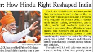 अमेरिकेतील आणि जगभरात प्रभाव असलेल्या न्यूयॉर्क टाइम्स या प्रतिष्ठित वर्तमानपत्राने भारतातील सध्याच्या राजकीय आणि सामाजिक परिस्थितीबाबत एक सविस्तर आणि संशोधनाधारित बातमी प्रसिद्ध केली आहे. या वृत्तानुसार, भारतात राष्ट्रीय स्वयंसेवक संघ (आरएसएस) आणि हिंदुत्वाच्या विचारसरणीच्या आडोशाखाली देशातील विविध यंत्रणांवर दीर्घकाळात मजबूत पकड निर्माण करण्यात आली असून, ती पकड आता सैल करणे अत्यंत कठीण झाले आहे.जरी हे वृत्त अमेरिकेत प्रसिद्ध झाले असले, तरी न्यूयॉर्क टाइम्सचे जागतिक वाचकवर्ग असल्यामुळे या बातमीची चर्चा भारतासह युरोप, ऑस्ट्रेलिया आणि मध्यपूर्वेतही होत आहे. या वृत्ताचे काही भाग भारतातून, विशेषतः नागपूर येथून संकलित करण्यात आल्याचेही नमूद करण्यात आले आहे.