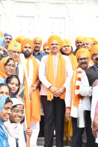 नांदेड – तख्त सचखंड श्री हजूर अबलचल नगर साहिबजी गुरुद्वाराचे राज्याचे मुख्यमंत्री देवेंद्र फडणवीस यांनी आज दर्शन घेतले.त्यांच्यासह आंध्रप्रदेश उपमुख्यमंत्री कोनिडला पवन कल्याण, महाराष्ट्र राज्याचे इतर मागास बहुजन कल्याण मंत्री तथा नांदेडचे पालकमंत्री अतुल सावे, पर्यावरण मंत्री पंकजा मुंडे, खासदार अशोक चव्हाण, खासदार डॉ. अजित गोपछडे, आमदार तुषार राठोड, आमदार राजेश पवार, आमदार बालाजी कल्याणकर, अल्पसंख्याक आयोगाचे सदस्य चरणदीप सिंघ आदींनीही दर्शन घेतले.गुरुद्वारा बोर्डाकडून मुख्यमंत्री देवेंद्र फडणवीस यांच्यासह सर्व मंत्री, लोकप्रतिनिधी, मान्यवर यांचा सन्मान करण्यात आला. याप्रसंगी गुरुद्वारा बोर्डाचे प्रशासक डॉ. विजय सतबीर सिंघ जी यांची प्रमुख उपस्थिती होती.