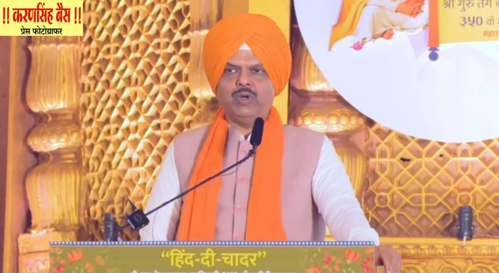 नांदेड येथील मोदी मैदानावर आयोजित ‘हिंद दी चादर’ श्री गुरू तेग बहादुर साहिब जी यांच्या 350 व्या शहीदी समागम कार्यक्रमात मुख्यमंत्री फडणवीस बोलत होते. यावेळी उपमुख्यमंत्री अजित पवार, आंध्र प्रदेशचे उपमुख्यमंत्री कोनिडला पवन कल्याण, राज्याचे जलसंपदा मंत्री गिरीश महाजन, पशुसंवर्धन मंत्री पंकजा मुंडे, सहकारमंत्री बाबासाहेब पाटील, नांदेडचे पालकमंत्री अतुल सावे, नवी दिल्लीचे उद्योग, अन्न व नागरी पुरवठा मंत्री सरदार मनजिंदर सिंघ सिरसा, माजी मुख्यमंत्री तथा खासदार अशोक चव्हाण, खासदार डॉ.अजित गोपछडे, खासदार डॉ. भागवत कराड, आमदार प्रताप पाटील चिखलीकर, आमदार बालाजी कल्याणकर, आमदार श्रीजया चव्हाण, आमदार जितेंद्र अंतापूरकर, आमदार रवींद्र चव्हाण, राज्य अल्पसंख्याक विकास महामंडळाचे अध्यक्ष ललित गांधी, मुख्यमंत्री कार्यालयाचे प्रधान सचिव श्रीकर परदेशी, अल्पसंख्याक विभागाचे सचिव रुचेश जयवंशी, विभागीय आयुक्त जितेंद्र पापळकर, विशेष पोलीस उपमहानिरीक्षक शहाजी उमाप, जिल्हाधिकारी राहुल कर्डिले, पोलिस अधीक्षक अबिनाश कुमार, गुरूव्दारा बोर्डाचे प्रशासक डॉ.विजय सतबीर सिंघ, शहीदी समागम समितीचे राज्य समन्वयक रामेश्वर नाईक यावेळी उपस्थित होते.