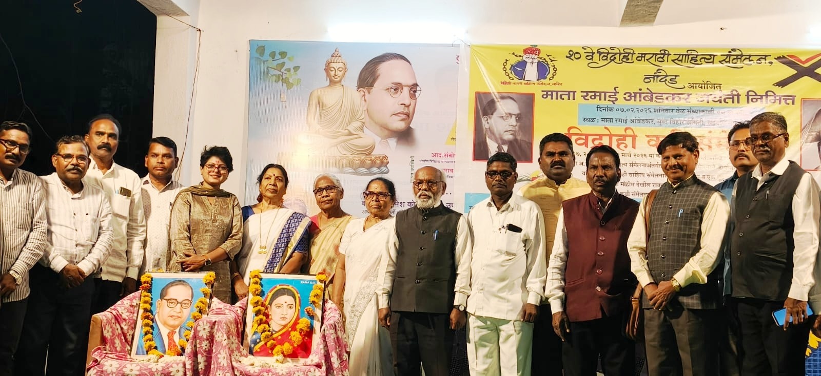 नांदेड- येत्या २८ फेब्रुवारी व १ मार्च रोजी शहरात होणाऱ्या विद्रोही मराठी साहित्य संमेलनाच्या पार्श्वभूमीवर एक मूठ धान्य एक रुपया मोहिमेचा प्रचार करण्याच्या आणि अधिकाधिक लोकसहभाग वाढविण्यासाठी विद्रोही कविसंमेलनाचे आयोजन करण्यात येत आहे. माता रमाई जयंतीचे औचित्य साधून शहरातील सहयोगनगरस्थित माता रमाई आंबेडकर बुद्ध विहारात पहिल्या विद्रोही कविसंमेलनाचे आयोजन करण्यात आले होते. गुलाबी थंडीतही कवी कवयित्रींनी विद्रोहाचा अंगार फुलविला. या कविसंमेलनाच्या अध्यक्षस्थानी डॉ. अनंत राऊत तर प्रमुख पाहुणे म्हणून डॉ. आदिनाथ इंगोले, डॉ. विलासराज भद्रे, डॉ. भीमराव हाटकर, दिगंबर घायाळे, विमल शेंडे, दत्ता तुमवाड यांची उपस्थिती होती.