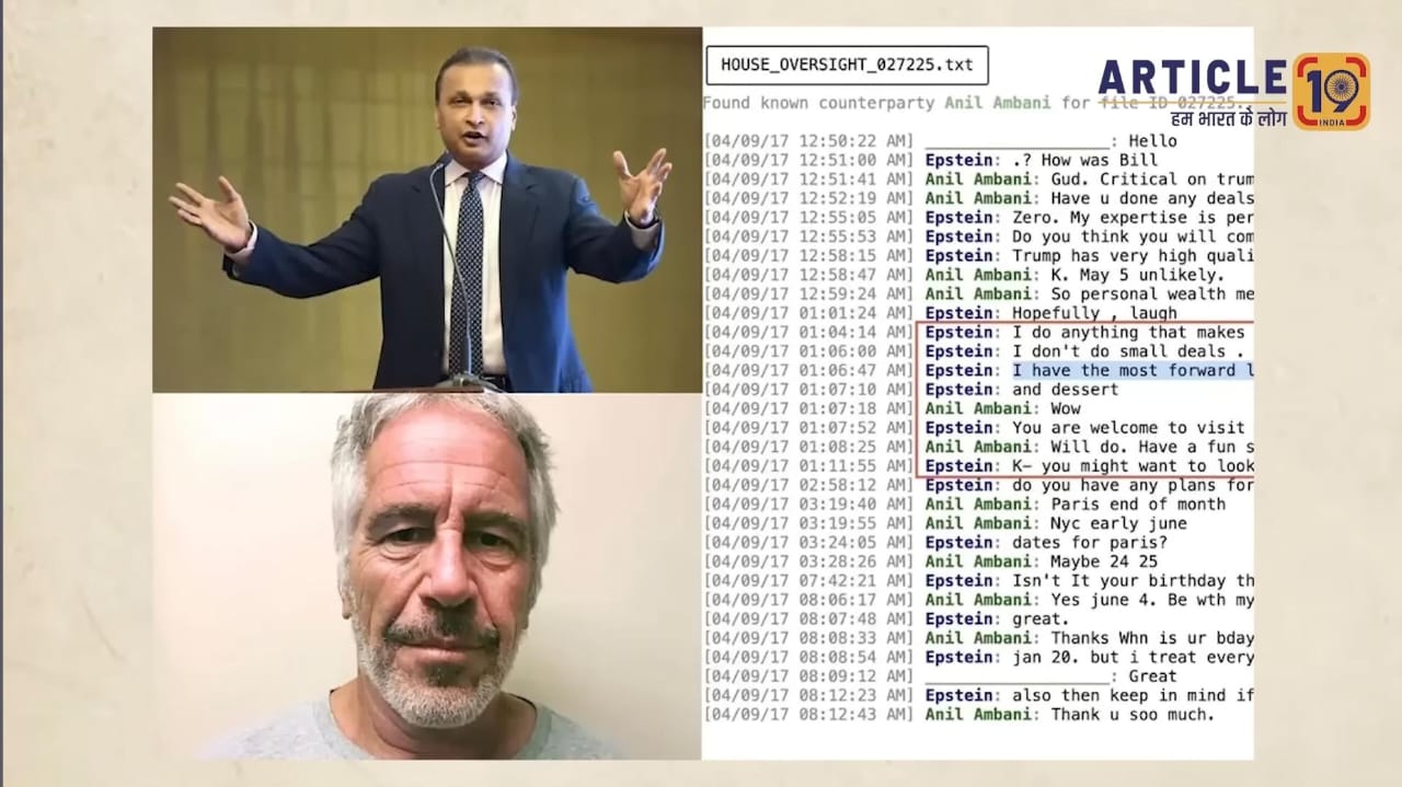 2017 ते 2019 या काळातील कथित मेल्स आणि संदेशांमध्ये उद्योगजगताच्या आड रंगीत चर्चांचा बाजार भरलेला आहे. 9 मार्च 2017 रोजीच्या संभाषणात सोनेरी केसांची उंच स्वीडिश मुलगी हा उल्लेख येतो. असा उल्लेख पहिल्यांदा कुणीच करत नाही याचा अर्थ आधीपासूनच घनिष्ठ संबंध होते.या व्यक्तीला 2008 मध्ये यौन गैरप्रकारासाठी दोषी ठरवून शिक्षा झाली होती. तरीही तो जगभरातील प्रभावशाली लोकांच्या संपर्कात कसा राहतो? पॅरिस, न्यूयॉर्क येथे भेटी ठरवल्या जातात. मे 2019 मध्ये अनिल अंबानी यांच्या न्यूयॉर्क भेटीदरम्यान त्यांना मॅनहॅटनमधील घरात बोलावले जाते. आणि त्यांच्या कार्यालयाकडून मेलवर अधिकृत पुष्टी दिली जाते ही साधी गोष्ट आहे का?