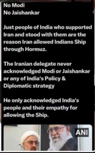 राजदूत मोहम्मद फतेह अली यांनी दिलेल्या एका मुलाखतीत सांगितले की, इराणमध्ये घडलेल्या दुर्दैवी घटनांनंतर भारतातील सामान्य जनतेने इराणबद्दल जी सहानुभूती, संवेदना आणि मैत्रीची भावना व्यक्त केली, त्याचा इराणच्या लोकांवर खोल परिणाम झाला. काही निरपराध बालिकांच्या मृत्यूच्या घटनेनंतर भारतातील अनेक लोकांनी सोशल मीडियावर, सार्वजनिक चर्चांमध्ये आणि विविध माध्यमांतून इराणच्या लोकांबद्दल आपला पाठिंबा व्यक्त केला. ही भावना केवळ औपचारिक नव्हती, तर ती खरी मानवी संवेदनांमधून आलेली होती. याच मानवतावादी भावनेमुळे आणि भारतीय जनतेने दाखवलेल्या आपुलकीमुळे इराणने काही भारतीय तेलवाहू टँकर्स हार्मुजच्या खाडीतून सोडण्याचा निर्णय घेतला. राजदूतांनी स्पष्टपणे नमूद केले की हा निर्णय केवळ भारत सरकारच्या विनंतीमुळे घेतलेला नाही, तर भारतातील जनतेने दाखवलेल्या सहवेदनेमुळे आणि मैत्रीच्या भावनेमुळे घेण्यात आला.