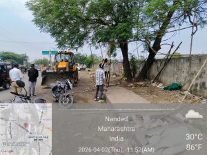 नांदेड (प्रतिनिधी)- नांदेड वाघाळा शहर महानगरपालिकेने देगलूर नाका ते हैदरबागकडे जाणाऱ्या मुख्य रस्त्यावर आज मोठी अतिक्रमण हटाव मोहीम राबवत सुमारे १८ ते २० अतिक्रमित दुकाने हटवली. सार्वजनिक रस्त्यावर वर्षानुवर्षे उभी राहिलेली ही दुकाने अखेर प्रशासनाच्या कारवाईसमोर टिकू शकली नाहीत. विशेष म्हणजे या अतिक्रमणांमध्ये स्वतःला पत्रकार म्हणून ओळख देणाऱ्या एका यूट्यूब पत्रकार शेख याहिया शेख इसाक याचे ही दुकान होते.